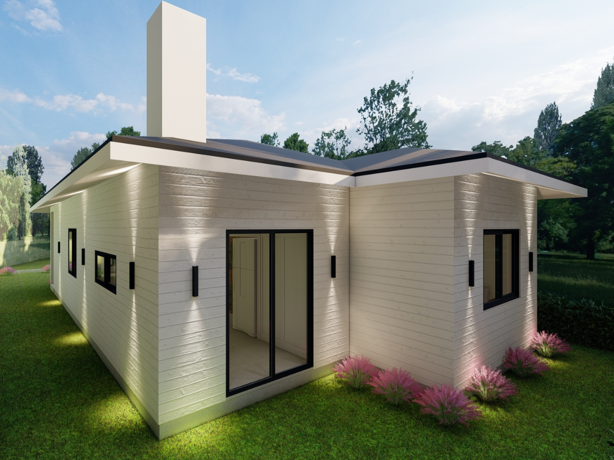 A estrutura em Light Steel Frame torna a construção até 50% mais rápida e seis vezes mais leve que a alvenaria, com base em radier protendido que evita trincas e aumenta a durabilidade. O telhado termoacústico com núcleo PIR e as fachadas em Termo Siding garantem isolamento térmico e acústico, com manutenção mínima.