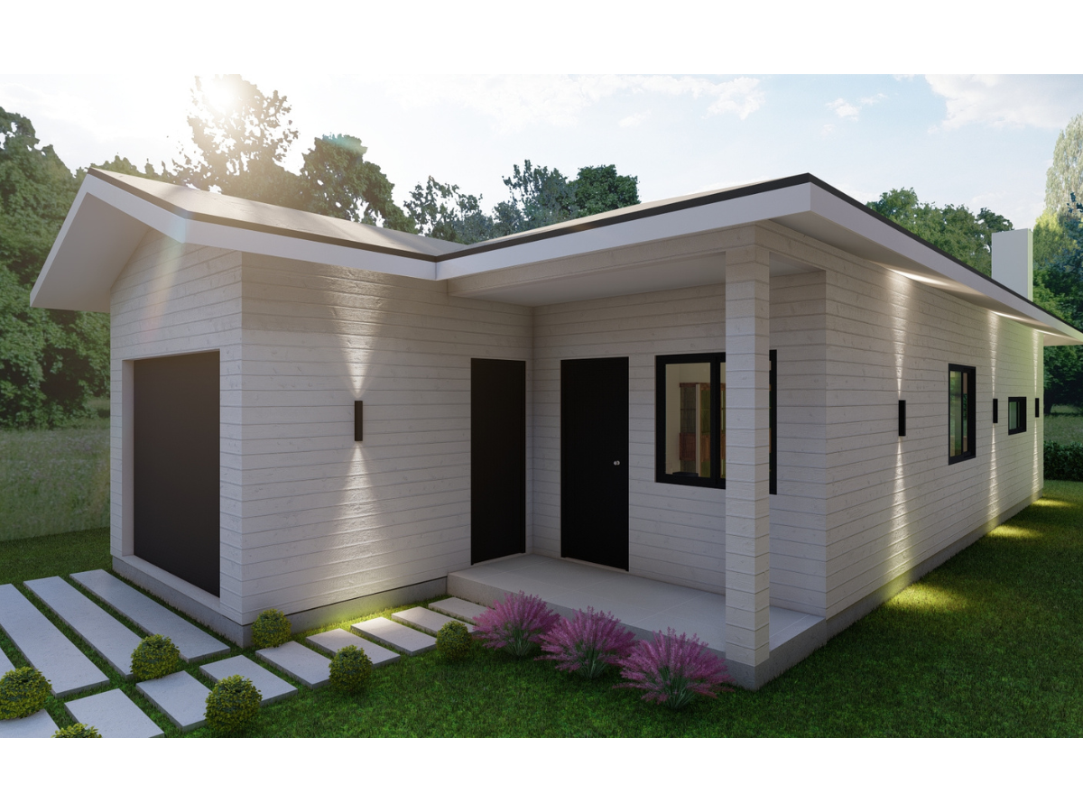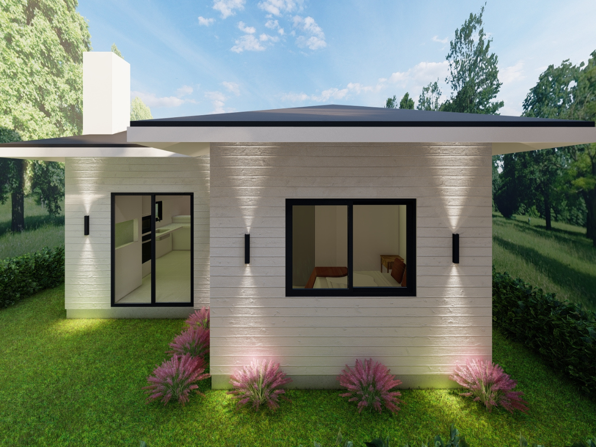 Internamente, o forro em PVC, os painéis WPC e a lã PET proporcionam conforto, praticidade e acabamento superior. Tubulações PEX e esquadrias de alumínio preto asseguram resistência e longa vida útil. Resultado: uma casa moderna, eficiente e feita para viver bem todos os dias.
