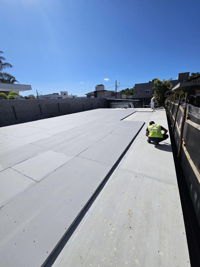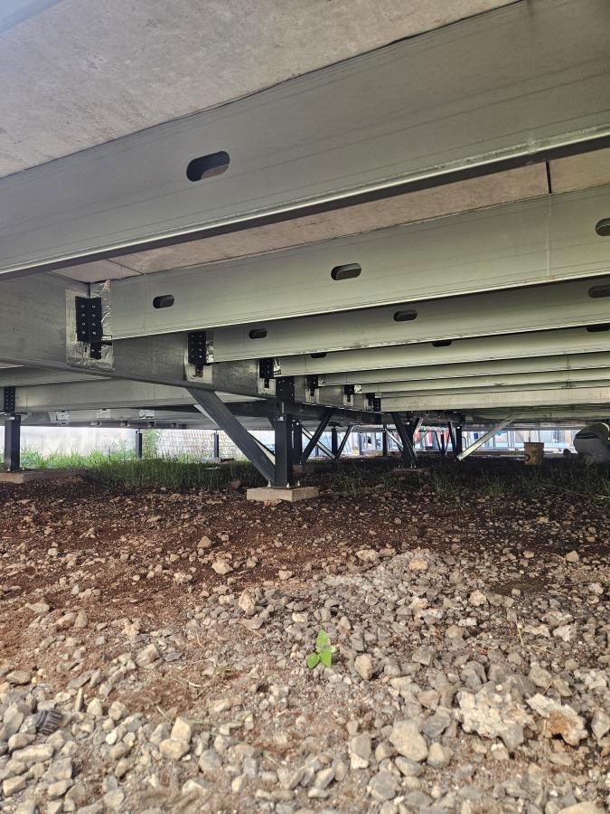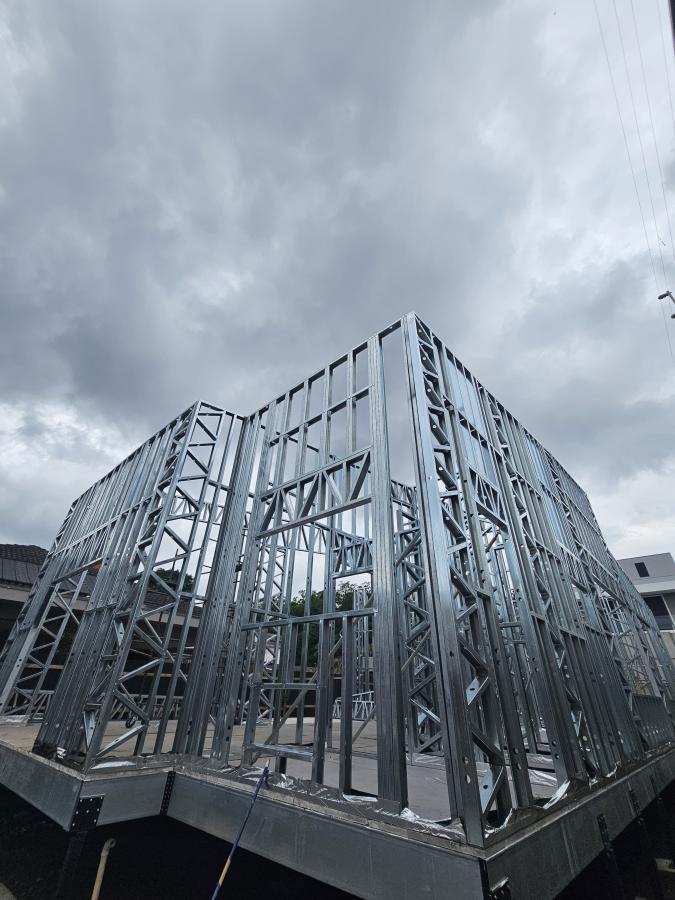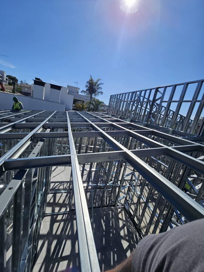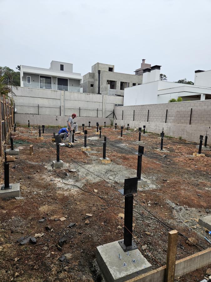– Fundação em estacas de concreto e laje seca em Light Steel Frame;